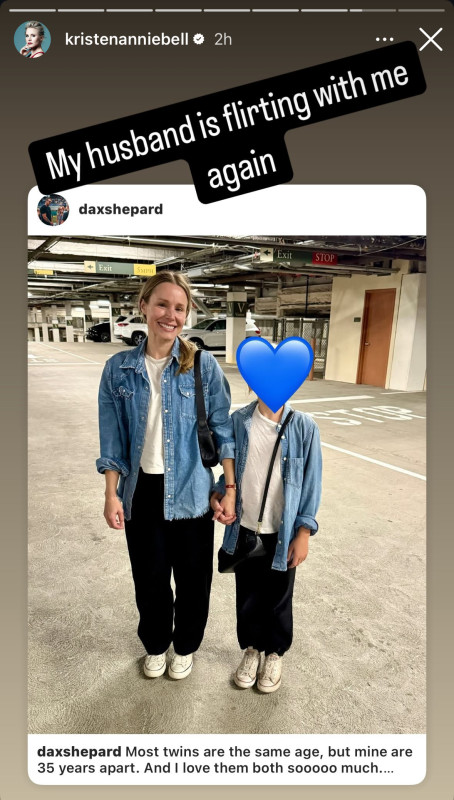 On Thursday, Shepard posted an endearing picture on Instagram showing Bell alongside one of their daughters wearing coordinated outfits. He affectionately called the duo of mother and daughter “twins” in the description.