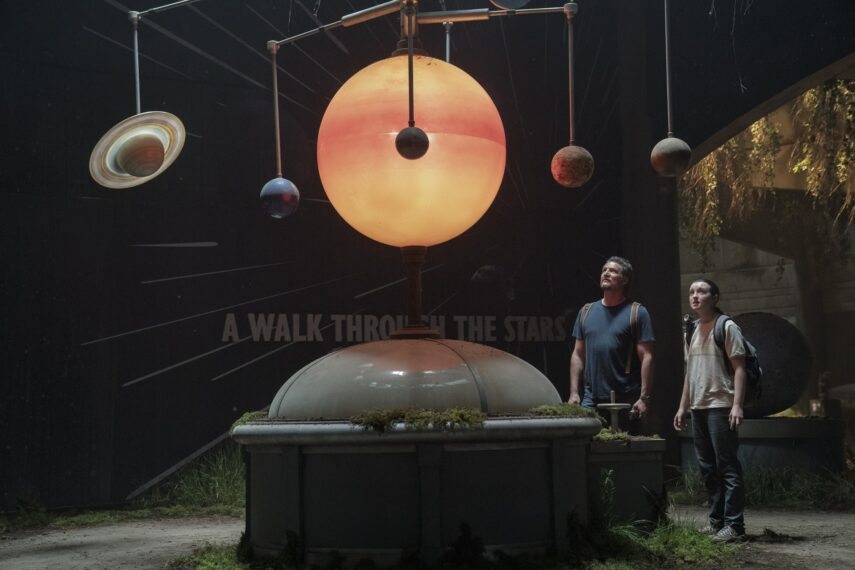 In the flashback sequence, we see Joel’s father with the watch. The museum accurately reflects elements from the game. This detail doesn’t appear in the series. A complete rover was constructed, precisely as depicted in the game, though it might not be noticeable due to specific camera placements. However, this meticulous recreation extends to the museum area and the space segment, which mirrors the game content perfectly—quite astounding.